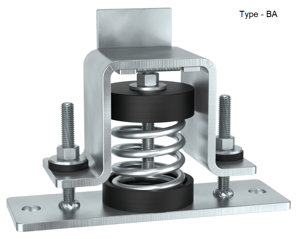 SMSR-BA / BF / BT spring isolators are designed to provide efficient vibration dampening from critical structural vibrations and all-directional restraint from vertical and horizontal forces, as well as from forces due to seismic activities and high wind loads.
